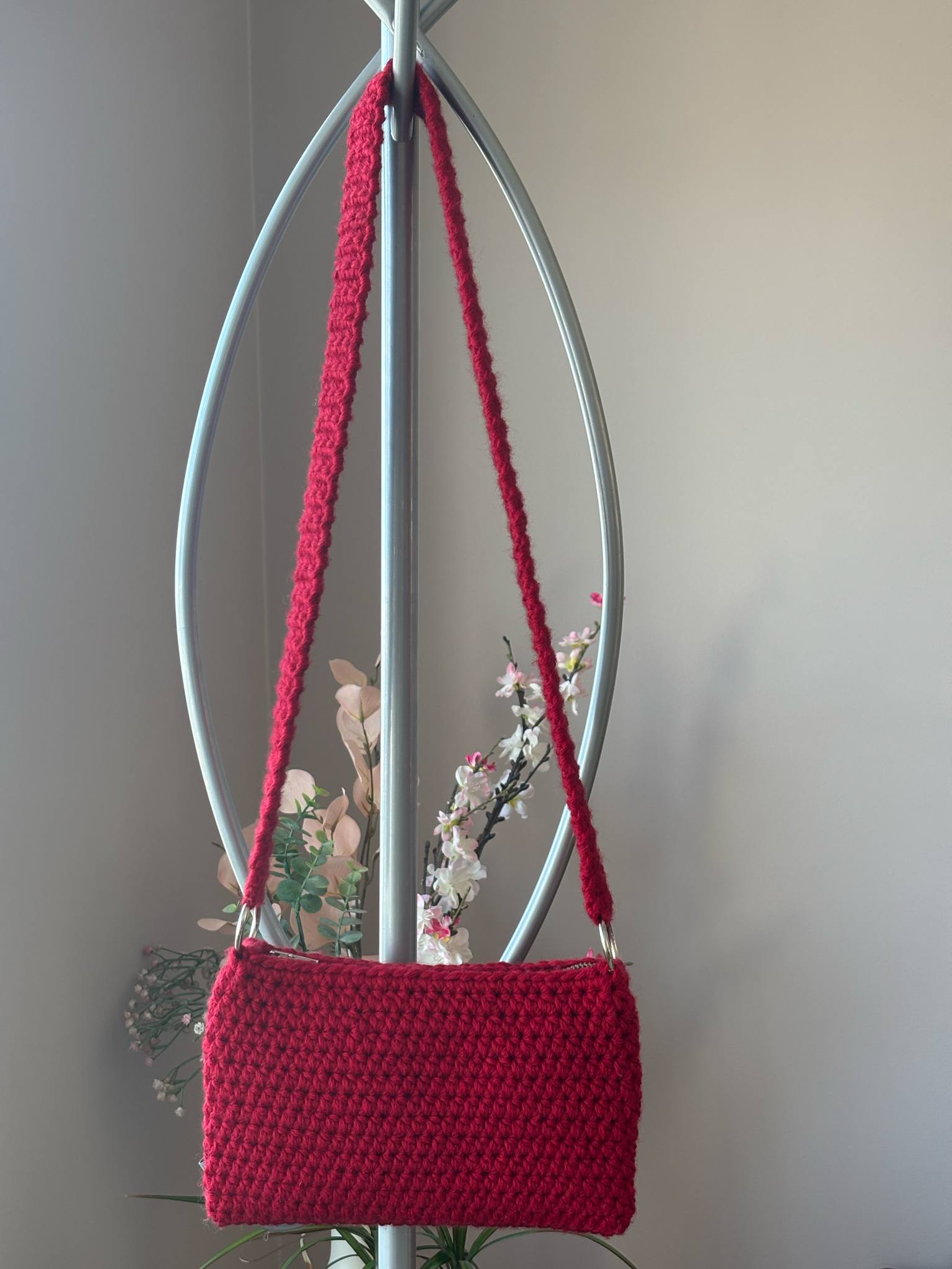 Heklað veski úr spuna.